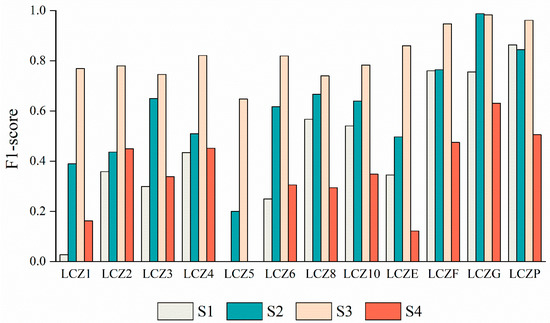 F1-score per class of LCZ in four schemes.
