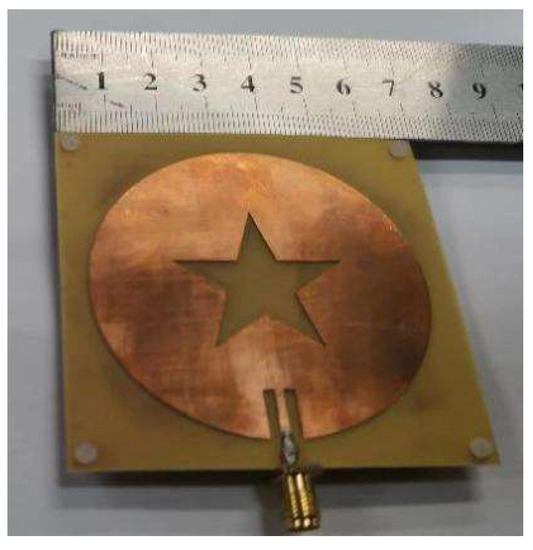 - Jian, C.; Hui, Z.; Lei, C. Design of single -frequency circular microstrip patch antenna. Mod. Electron. Tech. 2015, 38, 48–50. [Google Scholar]