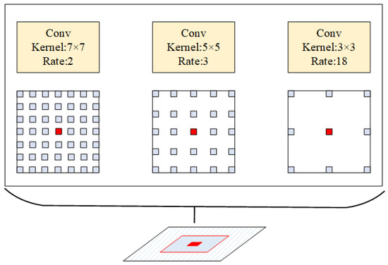 Schematic diagram of the atrous heterokernel convolution kernel. It extracts features under different spaces of the image in the same sensory domain.
