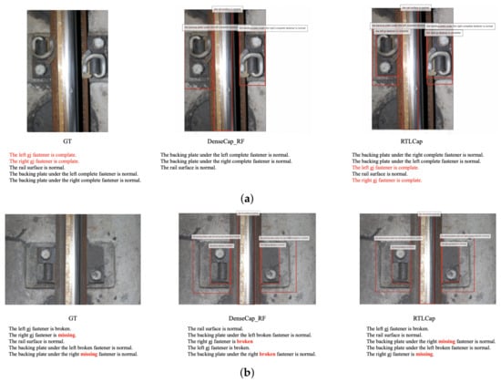 In this experiment, by comparing with DenseCap and DenseCap_RF, the validity of our method on the RTL-I dataset is evaluated. The results are shown in Table 2. From these experimental results, it can be concluded that the proposed RTLCap attains the best defect description performance in these models. Specifically, for the RTL-I dataset, the mAP of RTLCap is 0.980, which achieves 0.837 and 0.022 gains compared to DenseCap and DenseCap_RF, respectively. Thus, it is a better alternative for practical applications on railway track lines.