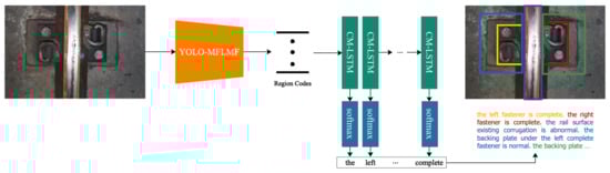 To solve these problems, the railway track line image (RTL-I) dataset collected from Beijing Metro Line 6 is constructed firstly, and the images and captions in the dataset are labeled manually in terms of the requirements of maintenance decision-making. In this study, four types of information, including object, type, position, and status, are defined to generate inspection information for the safety status of the railway track line. After that, to improve the defect description accuracy and be more suitable for the scenario of railway track lines, an improved DenseCap model named railway track line image captioning model (RTLCap) is proposed. Specifically, in RTLCap, ResNet-50-FPN [11] is used instead of VGG16 [12] as the backbone of the model to extract better image features. In addition, in response to the issues of object occlusion and category imbalance in the field images, Soft-NMS [13] and Focal Loss [14] are applied in RTLCap to promote the performance of defect description. Finally, to reduce the complexity of RTLCap and speed up the image processing procedure, while maintaining a desirable defect description performance, a reconstructed RTLCap model named Faster RTLCap is presented with the help of YOLOv3 [15]. The proposed Faster RTLCap model follows a similar path to the RTLCap model. More precisely, Darknet53 is used as the basic feature extractor in the encoder part, and a multi-level regional feature localization, mapping, and fusion module (MFLMF) is proposed to extract regional features. Besides, followed by MFLMF, an SPP (Spatial Pyramid Pooling) [16] layer is employed to reduce model parameters. For the decoder part, a stacked LSTM named CM-LSTM is adopted as the language model to improve the defect description performance further. Based on the experimental results, the proposed methods can generate the safety status information of the key components in the railway track line image in a text format effectively and automatically, which are better alternatives for practical applications.