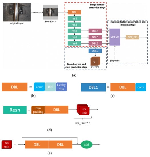 As shown in Figure 11, the encoder part based on bifurcation-fusion (named YOLO-MFLMF) is divided into three steps: image feature extraction stage, bounding box, and class prediction stage, and regional feature construction and encoding stage.