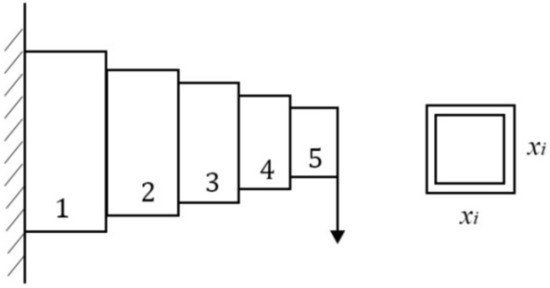 FSGWO was applied to solve the optimization problem of Equation (23). The competitive algorithms included CS [57], BGWO [61], m-SCA [59], and MFO [60]. Table 17 shows the results of related algorithms for the cantilever beam design problem. In Table 17, the best object function values are highlighted with a bold font and gray background. The data for the competitive algorithms are taken from the original papers. From Table 17, the objective function value of FSGWO is 1.33996, which is as good as that of BGWO.