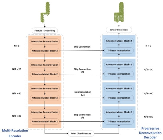28] applies transformers to process point cloud features to enhance the characterization of point cloud features. It also achieves a perfect performance in the areas of the classification, segmentation, and completion of 3D point clouds.