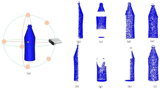 Figure 5b–i show the missing point clouds generated by the eight camera poses, respectively.