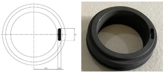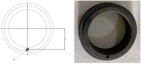 For the hole fault, the mechanical seal’s diameter was 38 mm. A hole with a diameter and a depth of 2.8 mm was made in the revolving part of the MS to obtain the mechanical seal hole defect. Figure 5 shows the MS hole fault (MSH).
