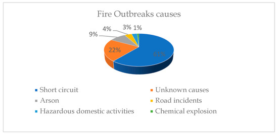 Rwanda is an eastern African country with a fast-growing economy. Its cities have been gradually expanding, with 881,445 city dwellers in its largest cities and 8,169,341 in rural areas [40]. Increasing urban populations have also led to increasing risk of fire. There is a high risk of fire outbreak due to new public construction, combined with a lack of firefighting equipment and sufficient people to operate it. Over the last 10 years, fire outbreaks have increased, with 327 fires registered across the country since 2010. Public buildings include shops and higher learning institutions, holding a huge number of people. The case study taken used for this research was from the University of Rwanda, College of Science and Technology, Kalisimbi Block, where the research was conducted and deployed. Table 3 summarizes fire incidents recorded from 2010 to 2019.