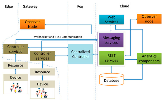 Different layers of the proposed architecture are shown in Figure 1, describing each layer with its computational resources. The device layer known as the edge layer held all capabilities of sensing and communicating with the surrounding environment. The sensor nodes were grouped to allow connection and disconnection management.