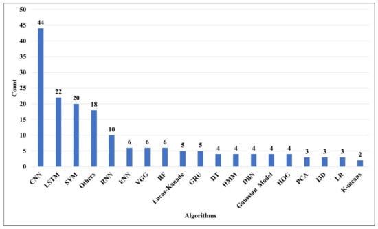 Frequency of techniques/algorithms used in the existing literature on HAR.