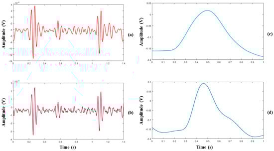 Example of heart sound (PCG) and pulse (PPG) signal measured by the prototype and MP160: (a) PCG signal delineated by the prototype device; (b) PCG signal delineated by MP160; (c) PPG signal delineated by the prototype; (d) PPG signal delineated by MP160.