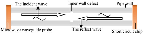 As shown in Figure 1, the single-excitation short-circuit reflection method was used to excite microwaves at one end of the pipe through a waveguide probe, and a short-circuit piece was applied at the other end of the pipe. When the microwave propagates to the short-circuit piece, total reflection occurs; when there is a defect in the pipe, part of the energy is lost at the defect, and by analyzing the return loss, defect detection on the inner wall of the pipeline can be realized.