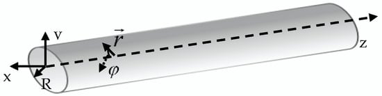 In the pipeline, the microwave propagates along the axial direction of the pipeline in TEmn mode. According to Maxwell’s equations, the microwave field distribution equation of the TEmn mode in a pipeline in a cylindrical coordinate system can be obtained. The pipeline coordinate system is shown in Figure 2.