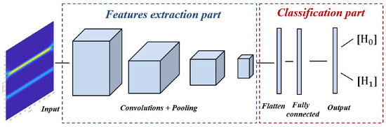 We considered a secure cooperative CRN with a frequency band B = [ Hz to Hz] of interest. The aim task of each SU cooperating in the network is the detection of the occupancy of the band B by PU with a high probability of detection and accuracy. Let be a set of frequencies being used by PU, and then the band is considered as occupied if ⊂ B, otherwise, it is considered vacant. To perform the spectrum sensing process, the traditional technique involves three steps [34]. The first step aims at defining a test statistic, which varies according to the technique applied. For instance, energy-based detection takes the sum energy of the received signal as a test statistic [35]. The second step consists of a comparison between the test statistics and a predefined threshold to take a final decision as a last step. However, this type of technique processes the received signal with only one dimension (1D) (either time or frequency), which can reduce the reliability of the spectral analysis, particularly in the presence of intense noises. Furthermore, these techniques have to meet a certain number of requirements for efficient sensing (i.e., the energy-based detection technique requires pre-knowledge of the noise variance).