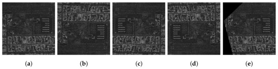 Operations of mirroring and trimming of a SAR scan. Image (a) presents the original image for mirroring, (b–d) are mirrored, (e) presents simple image trimming for data augmentation.