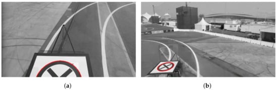 University of Zurich researchers have introduced a system in [] that first finds the quadrangle of the pattern and then searches for the ellipse or the cross, validating the detection using RANSAC. Then, the platform’s position is estimated from its relative position to the UAV, and an optimal landing trajectory is generated to land the UAV on the vehicle.