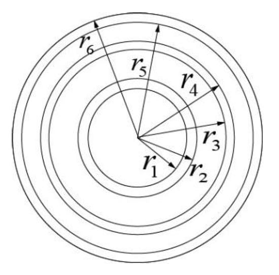 where , are the radii of the inner and outer edges of the nth layer of the borehole wall, respectively, m; is the Poisson’s ratio of the borehole wall of the layer; E is the elastic modulus of the borehole wall of the layer, ;
