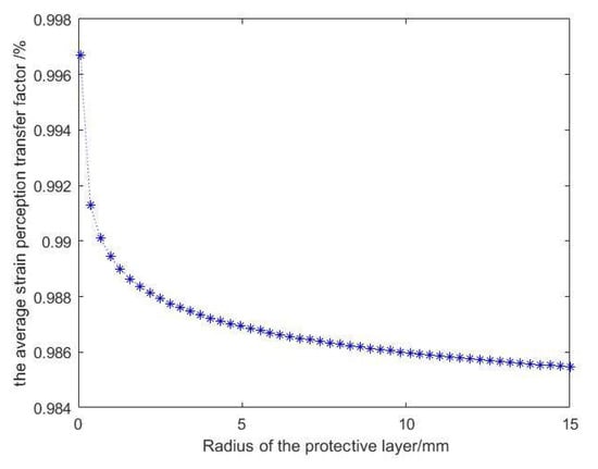 Effect of the radius of the protective layer on the average strain perception transfer factor.