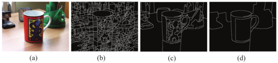 The global probability boundary algorithm (gPb) is used to segment the image and extract the object contour [20]. The gPb algorithm considers the image color, grayscale, texture and other information to extract high-quality image contours. Figure 1 is the contour of the cup image extracted by the gPb algorithm. The object contours with different details can be obtained with different thresholds k. Polygon approximation is used to extract the contour features.