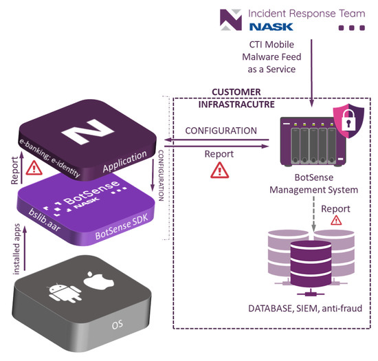 BotSense Mobile is a tool developed by NASK in 2018 as an extension of a successful BotSense system (https://en.botsense.pl/, accessed on 20 July 2022) for securing banking sites (currently securing 16 million Internet banking accounts). The tool is designed for phones with the Android operating system. It is distributed as an SDK library that needs to be integrated into the client’s mobile application (e.g., e-banking applications). The main functionalities of the application are: