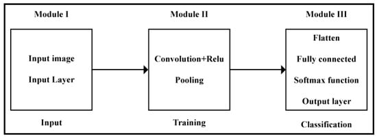 The overall architecture of a CNN is based on three modules. The block diagram of the modules of CNN is in given in Figure 3, including: