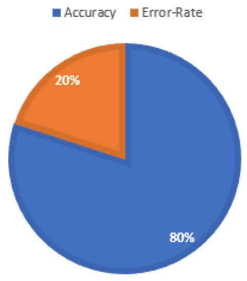 The CNN trained model was able to correctly classify 24 videos from the given testing dataset and was unable to correctly classify 6 videos. It was visually observed that the model was unable to correctly classify the videos with low resolutions, with anomalies long distances from the surveillance cameras, foggy environments, and surveillance cameras facing the reflection of light. The accuracy achieved after evaluating the model turned out to be almost 80% for the given dataset, as shown in Figure 20.