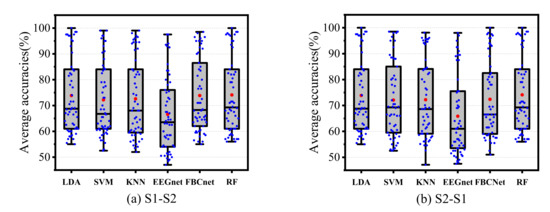 - SA: We set the parameters referring to the research by Xiao et al. [37]. Considering the poor classification effect of BCI illiteracy, we set the subspace dimension of principal component analysis (PCA) to all to avoid information loss;