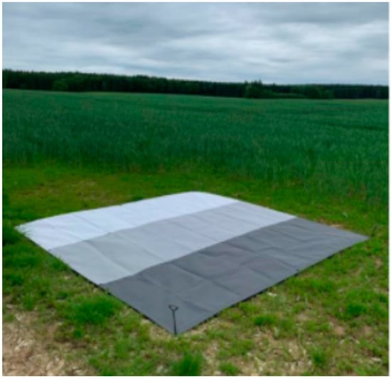 Tarp with the three gray reflection levels deployed at the interest area, used for radiometric calibration.