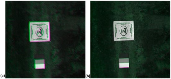 Example of co-registration images result: (a) no co-registrated bands and (b) co-registrated bands.
