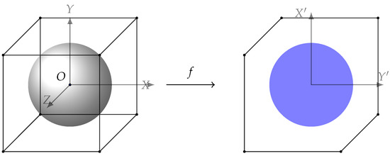 An example of mapping from three-dimensional to two-dimensional space. The hexagon and the circle are the mapping output of the cube and the sphere respectively.