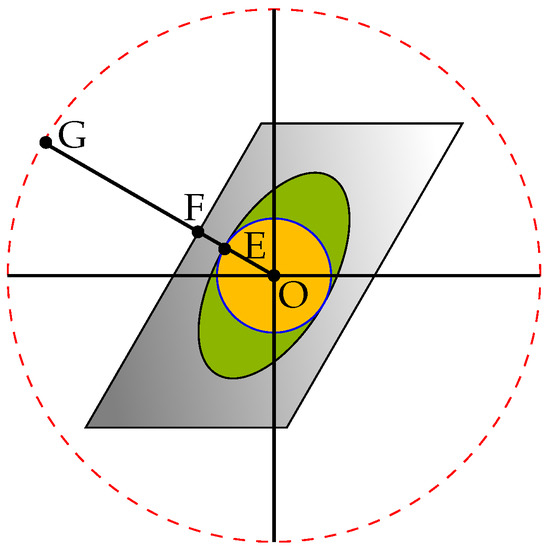 In general, as the number of IRS elements or the dimensions of increase, the mapping of the hypercube becomes more and more complicated and finding the optimal distance becomes more difficult. However, there is an upper bound for this distance. As shown in Figure 3, if instead of the cube, we limit the feasible set of IRS elements to the sphere inside the cube, i.e., replacing (18b) with (19b), the solution to the problem becomes . It turns out that finding is very simple as by the definition we have , and also we know that . Therefore, we can conclude . Finally, we use one last upper bound to make the original problem even easier to solve. Note that if instead of the ellipse, we consider the circle inscribed in it, we will have . As a result, we have
