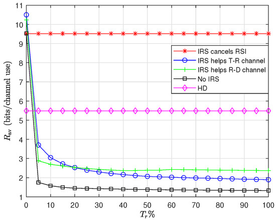 In this paper, it is assumed that signal delivery over the transmitter–IRS–receiver link is not available. This is mainly due to the power attenuation and the power radiation pattern effects [36]. As the IRS is a passive device, it has some power attenuation in practice, which makes the reflected waves weaker than the received ones. In addition, due to the power radiation pattern, based on the angle of arrival and departure, both received and reflected waves are subject to attenuation, respectively. In our system, as the IRS is established in the vicinity of the relay and is faced towards it, both aforementioned effects cause the source–IRS–destination link to be extremely weaker than the source–relay–destination link.