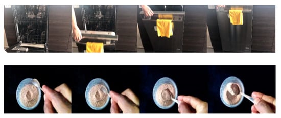 Example of actions in time-related datasets (top) closing the dishwasher; (bottom) scooping a spoonful of powder).