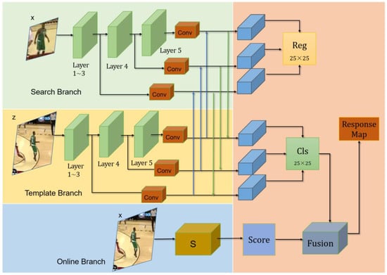 - Chen, Z.; Zhong, B.; Li, G.; Zhang, S.; Ji, R. Siamese box adaptive network for visual tracking. In Proceedings of the IEEE/CVF Conference on Computer Vision and Pattern Recognition, Seattle, WA, USA, 13–19 June 2020; pp. 6668–6677. [Google Scholar]