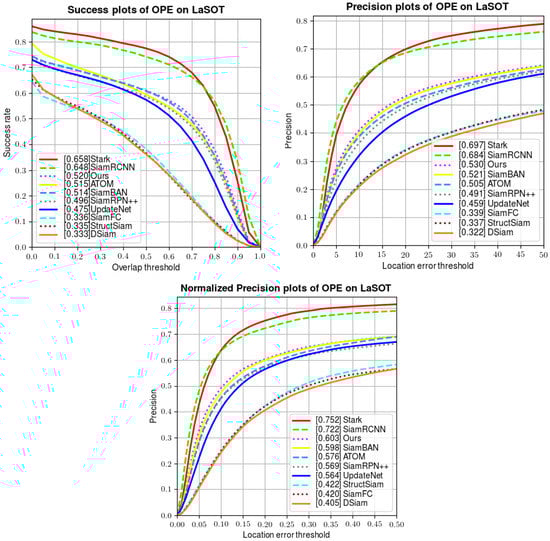 - Fan, H.; Lin, L.; Yang, F. Lasot: A high-quality benchmark for large-scale single object tracking. In Proceedings of the IEEE/CVF Conference on Computer Vision and Pattern Recognition, Long Beach, CA, USA, 15–20 June 2019; pp. 5374–5383. [Google Scholar]