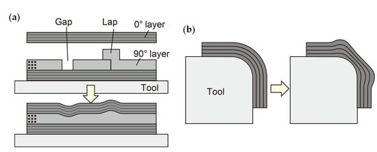 Consolidation of composite laminate with gap/lap (a) and composite corner part (b).