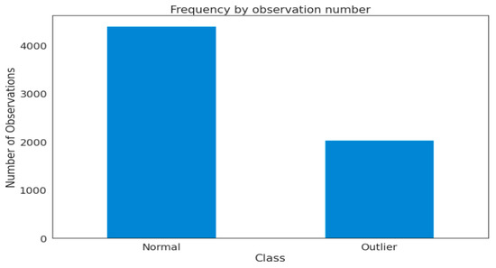 The results of the suggested systems’ different trials utilizing the Statlog (Landsat Satellite) dataset are shown in this section. The outcomes defined the dataset into two categories: outliers and normal instances. Figure 3 depicts the frequency of normal instances of satellite images, as well as the frequency of outliers. From the given dataset, there are 4399 normal samples and 2036 outlier samples.
