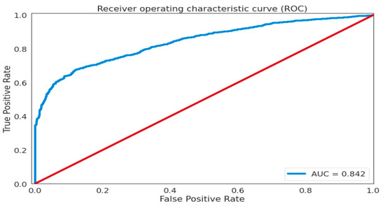 The entire tradeoff between the true (genuine) positive rate and the false positive rate is generated using Receiver Operating Characteristic (ROC) curves. The area under the ROC curve can be used to summarize the ROC curve. This is referred to as the AUC. The AUC ROC curve is a graph that shows the classification performance of a model in terms of two variables: true positive (tp) and false positive rate (fpr). The area under the receiver operating characteristic (AUROC) and Mean Precision–Recall (MPR) are used as metrics throughout the assessment to evaluate and examine the effectiveness of outlier identification systems. An effective model must have a high AUROC, but AUPRC frequently exposes the gap between techniques when dealing with imbalanced datasets. The suggested FC-VAE framework’s efficiency was assessed using AUC. The AUC may be determined by incorporating the areas of small geometrical components under the ROC curve. Figure 5 displays the AUC assessments of the suggested architecture. Existing classification models are outperformed by the proposed model (AUC = 0.842).