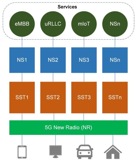 - Zhang, S. An overview of network slicing for 5G. IEEE Wirel. Commun. 2019, 26, 111–117. [Google Scholar] [CrossRef]
