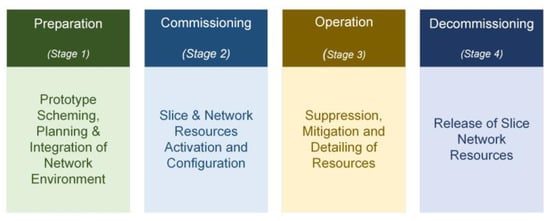 - Preparation: this stage involves creating a network slice template, planning network slice capacity, onboarding, evaluating access network requirements, configuring the communication network, and performing any other prerequisite preparations before beginning an NSI.