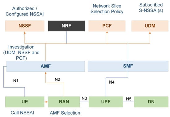 - Network Slice Selection Function (NSSF): appoints NSIs for the UE. Determines the AMF configured to service the UE.