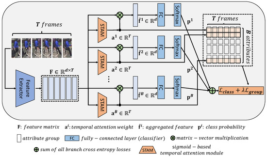 Finally, multi-branch classifiers are employed for multi-labeled attribute classifications as depicted in Figure 2. Notably, unlike the existing work [13], which trains multiple attribute classifiers by solely adopting independent classification losses, the proposed method reliably trains multiple classifiers using feature vectors constrained by a temporal attention module based on group sparsity.