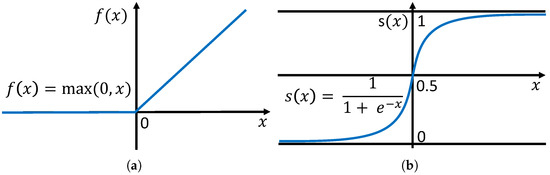 Activation functions. (a) ReLU function; (b) Sigmoid function.