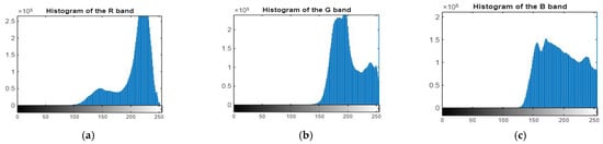 Histogram of R, G, and B bands of original image. (a) the R band, (b) the G band, (c) the B band.