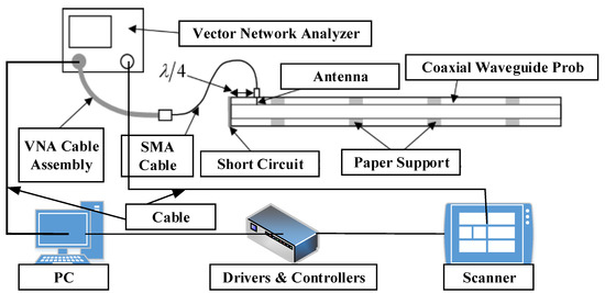 The range of microwave frequencies is 300 MHz to a maximum of 300 GHz. Microwave waves may easily pass through dielectric-coated materials without considerable attenuation, allowing interior structures to interact with microwave data [76]. The microwave impulses would then be reflected fully off the metal. As a result, these signals pass through corrosion and fault sites twice, increasing the likelihood of detecting them beneath the covering. The microwave ND methods measure the scale or phase in assessing the sample by monitoring sending or reflected microwave data. Moreover, lift-off and inspection frequency have an impact on reflection and transmission quality. By contrast, Figure 9 in [77] depicts the microwave ND experimental setup. A coaxial waveguide probe has been positioned on top of the specimen and down the experiment with a predetermined lift-off. Excitation signals are created by the vector network analyzer and retrieved frequency spectrum information from reflected signals. A PC controls the analyzer and provides the measurement signals to the PC over the General-Purpose Interface Bus. The X-Y scanner connects to a controller using a parallel connection. MATLAB software is utilized to build the XY scanner and analyzer that operate together during the measurement. Ultrasound waves can readily pass-through dielectric coatings.