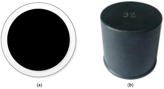 There are the following problems in image recognition of the end face of the bobbin directly: the diameter of the end face is only about 8 mm, the color is silver-white, and the process is slightly rough. If the image of the creel is taken directly with an industrial camera for processing, recognition and positioning, the configuration requirements of industrial computers and other equipment will be very high, which will greatly increase the use cost [29,30]. Therefore, the method of setting markers on the creel is adopted to highlight the characteristics of the creel. Figure 4a,b show the visual positioning markers designed or selected by the team. The disc marker has its own contrast, which makes recognition easier and greatly reduces the requirements of hardware configuration. The cover marker is installed on the creel, which is conducive to improving the flatness of the end face and improving the recognition. Its diameter is 10 mm.