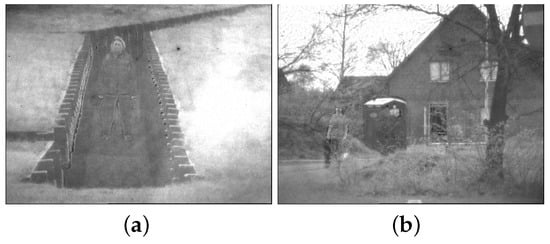 Results by [8] for the fusion of panchromatic VIS and IR images. (a) Fusion by [8] in Trench. (b) Fusion by [8] in Meeting.