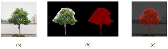Semantic segmentation of standing trees is crucial to the obtaining of factors such as tree crown and diameter at breast height (DBH) from standing tree images, which is an important part of related researches in the field of “digital forestry” [1]. Martins et al. proposed a region-based convolutional neural network (CNN) object instance segmentation algorithm for semantic segmentation of tree canopies in urban environments [2]. Airborne high-resolution urban forest images are mainly used for segmentation, which is costly. Yao et al. used fuzzy logic system (FLS) for semantic segmentation of standing trees in satellite images [3]. Chen et al. used the adversarial network Pix2Pix to segment partially occluded apple tree images, which was based on the depth images of apple trees captured by an RGB-D camera [4]. Ge et al. used a hybrid active contour model driven by pre-fitting energy to adaptive sign function for fast image segmentation [5,6].