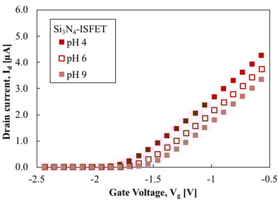Id–Vg of Si3N4-gate ISFET in various pH solutions.