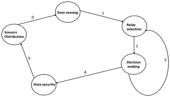 Moreover, the functioning of the proposed framework consists of many states, as depicted in Figure 5. The system will be in a specific state at a given time, and it will change states when a particular trigger is called. The objectives of the states are defined below.