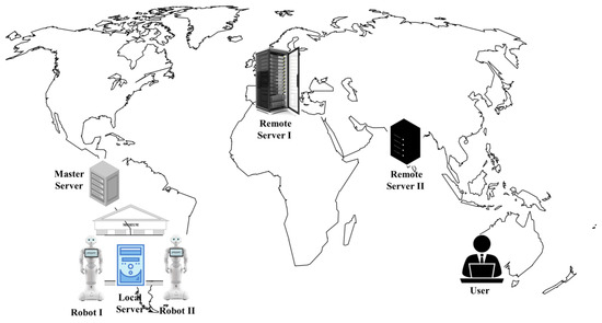 Considering that Robot I in the museum (acting as a client) requires image processing for its onsite location, which demands a lot of computational resource [5,6,16,17,18], it is appropriate that a powerful server attend to this request for better response times, taking into account its location due to the delay of the network. Therefore, the remote high-performance server (Remote Server I) responds faster than the local low-performance server even if there is a network delay. Later, Robot II requires the same image processing. Then, since Robot I already made the same query and has the response, the middleware in the Master Server assigns that request to Robot I, acting as server in this scenario.